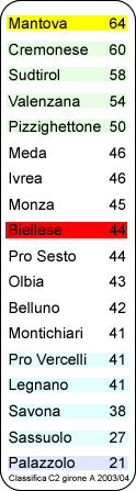 10/7/04 - L'As Biellese 1902 comunica di aver tesserato in data odierna i giocatori Cristian Altinier (attaccante), Matteo Negrisoli (difensore) e Alessandro Spinazzi (centrocampista), tutti prelevati dal Mantova neo-promosso in serie C1: Altinier giungerà a Biella in prestito, mentre Negrisoli (nella foto) e Spinazzi sono in comproprietà con il club virgiliano.